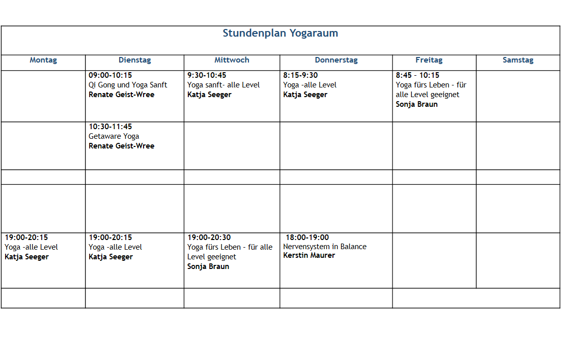 - Einzelstunden & yogatherapeutische Einheiten: nach Absprache